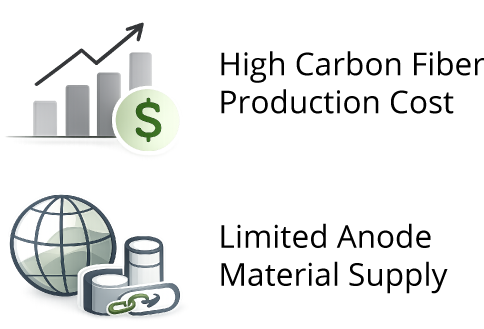 High production cost of carbon fibers and the restricted global supply of anode materials limit widespread adoption of advanced technology.
