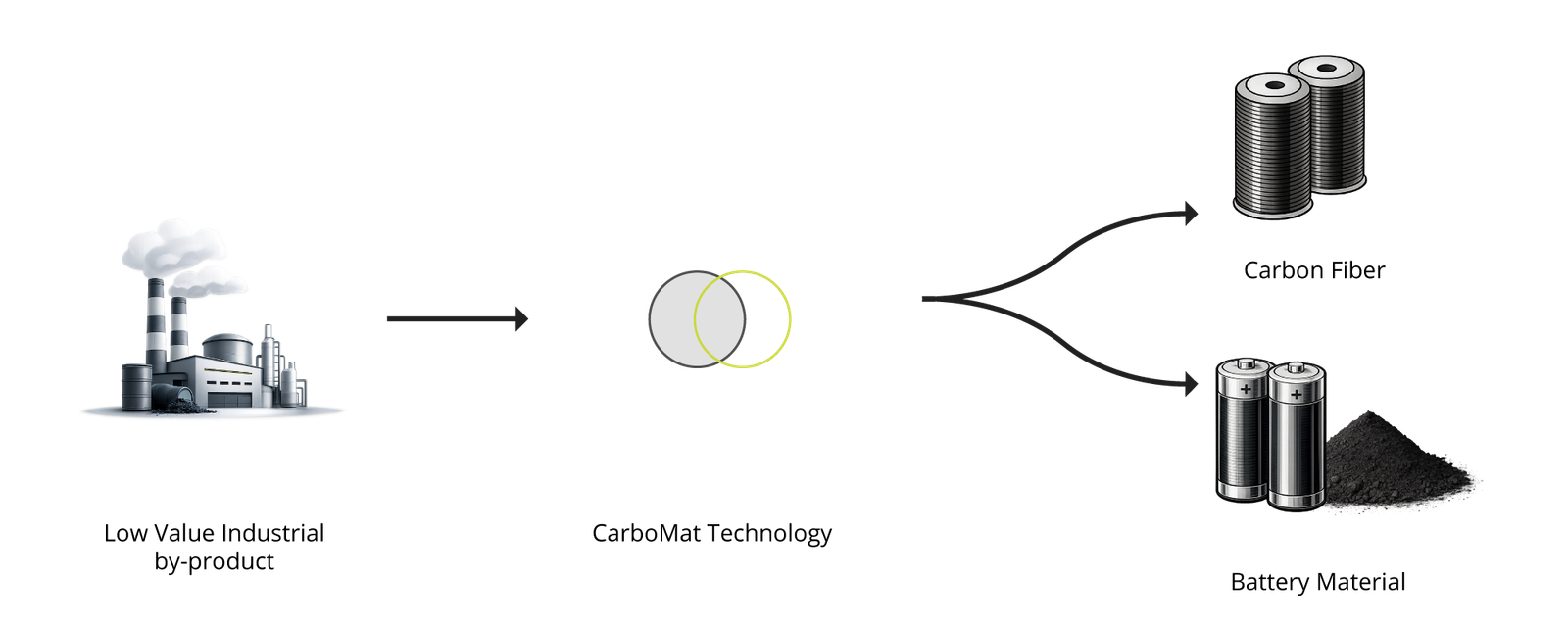 CarboMat is currently commercializing a low-cost sustainable technology to produce carbon fibers and anode materials derived from low-value industrial by-products (including bitumen by- products) for multifunctional applications in the composites and battery industries.
